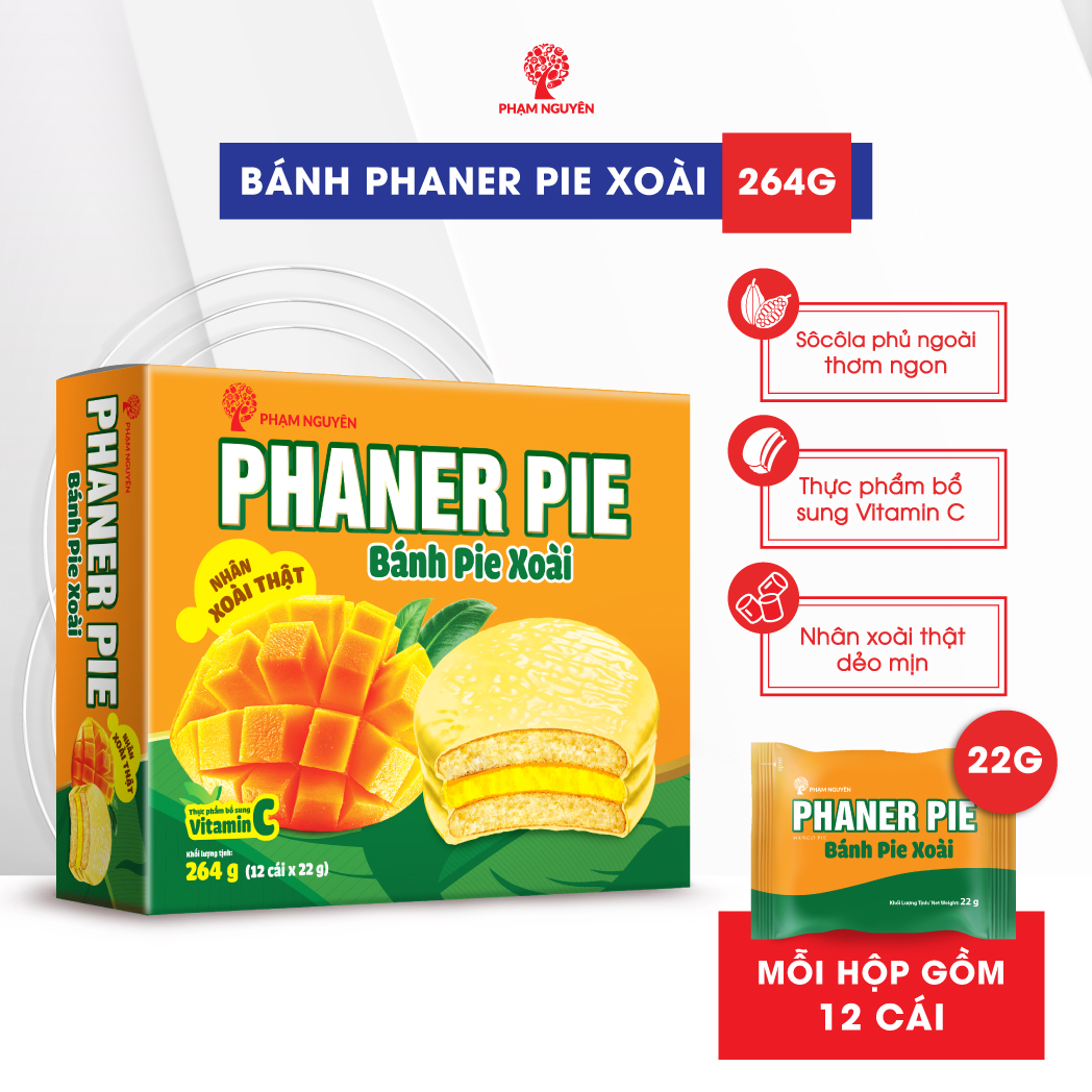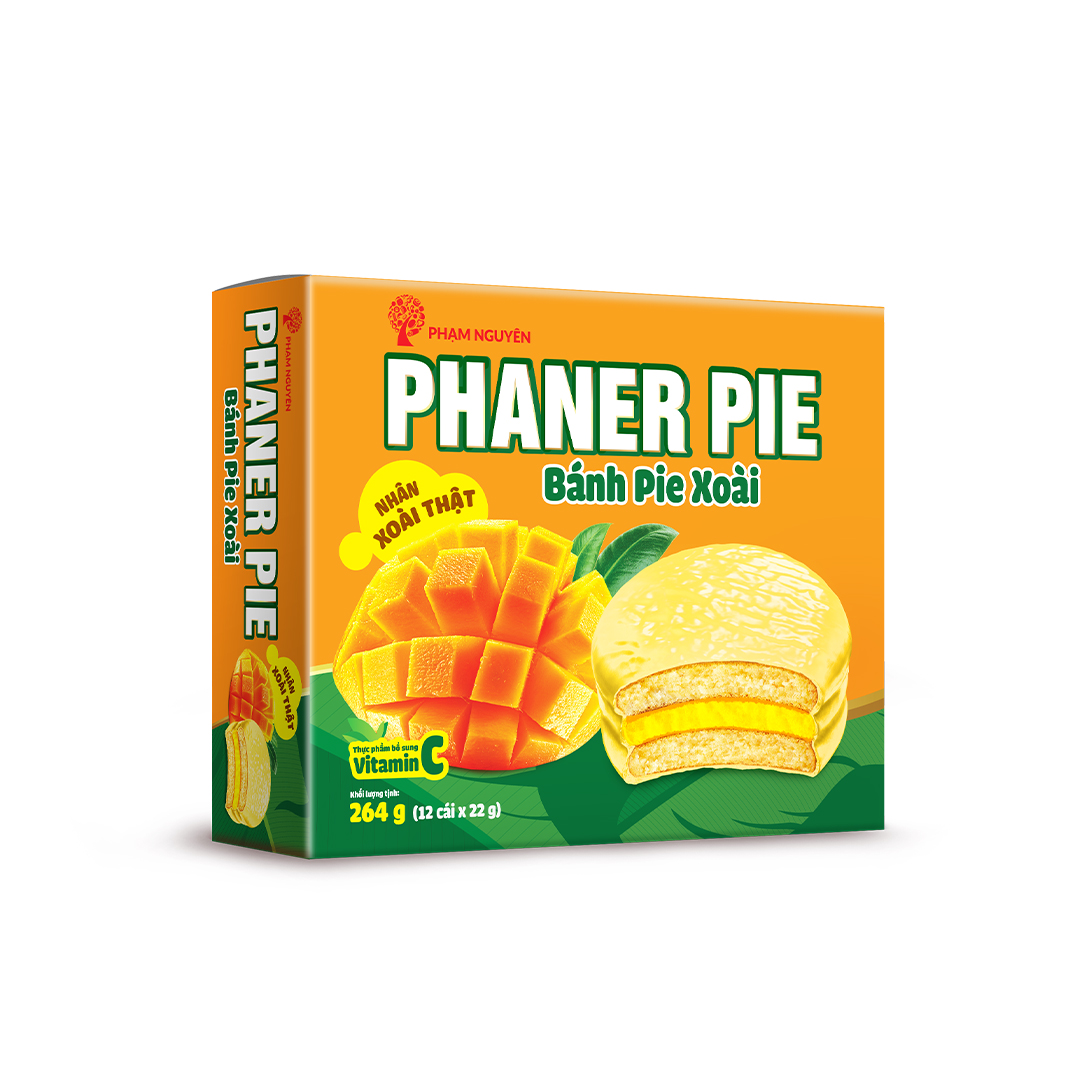 Tự hào là một thương hiệu Việt, Phạm Nguyên ra mắt dòng bánh Fruit Pie – Pie nhân mứt trái cây, mở đầu cho xu hướng bánh Pie mới với nhân không phải Marshmallow truyền thống mà là nhân mứt trái cây thật. Pie Xoài với nhân xoài thật, dẻo mịn, thơm lừng, chính là sự kết hợp hoàn hảo giữa trái cây đặc trưng của Việt Nam và nghệ thuật làm bánh tinh tế, mang đến trải nghiệm ẩm thực độc đáo, đậm đà bản sắc Việt.