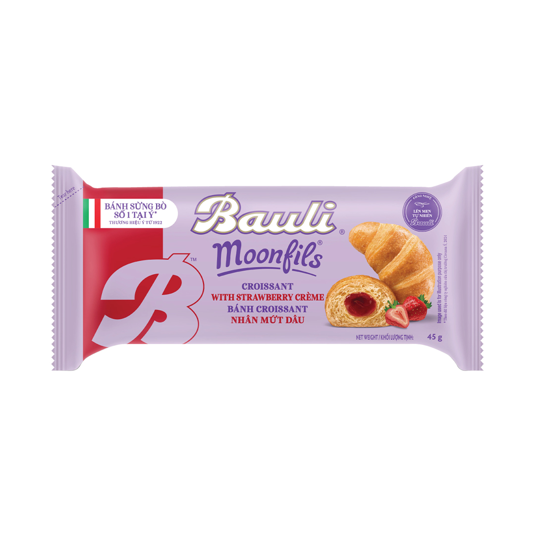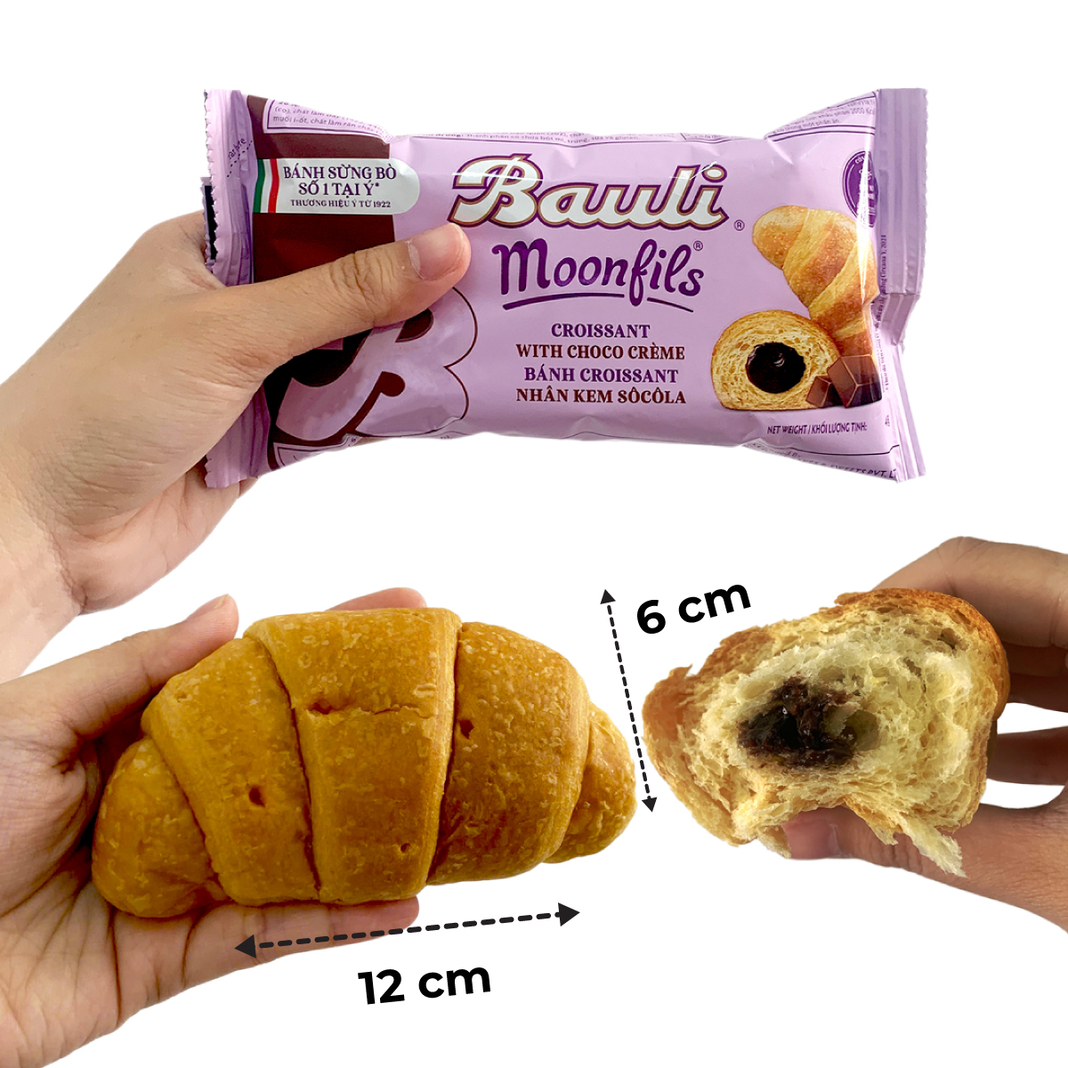 Croissant – Bauli Moonfils have a crispy crust, soft inside, layer by layer roll, fatty smell of butter with egg cream filling ( 3 flavors: Chocolate/ Strawberry/ Vanilla). Bread is baked according to the professional secret that is hard to find anywhere else. It not only stimulates the taste but also attractive at first sight.